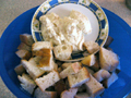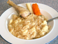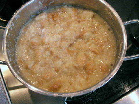 Semmeln in dünne Scheiben schneiden, mit heißer Suppe übergießen und aufkochen.