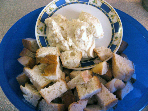 Mit einer Schneerute breiartig verrühren. Mit Salz und Pfeffer würzen.